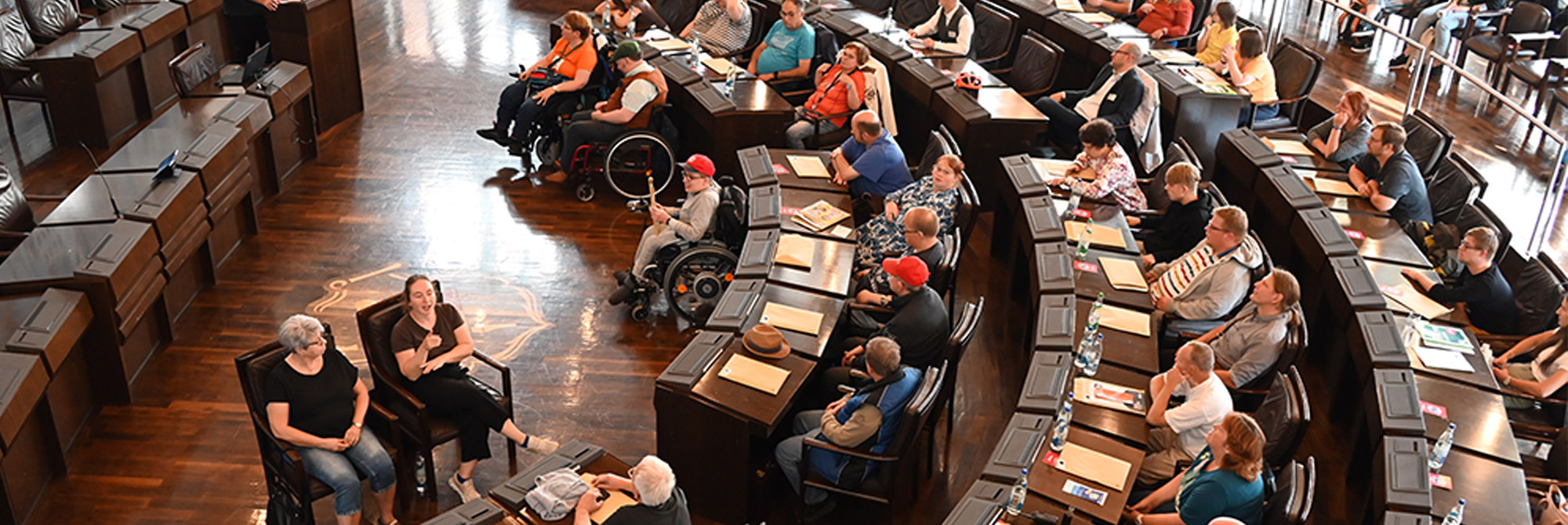Für viele Menschen mit Behinderung ist die anstehende Landtagswahl die erste Wahl, an der sie teilnehmen werden – obwohl sie schon weit über 18 Jahre alt sind. Denn Menschen mit Betreuungsassistenz dürfen sich erst seit einer überfälligen Wahlrechtsreform im Mai 2019 an der Wahl beteiligen. Rund 80 Personen mit und ohne Behinderung kamen dazu am vergangenen Freitag im Ratssaal des Würzburger Rathauses zusammen.